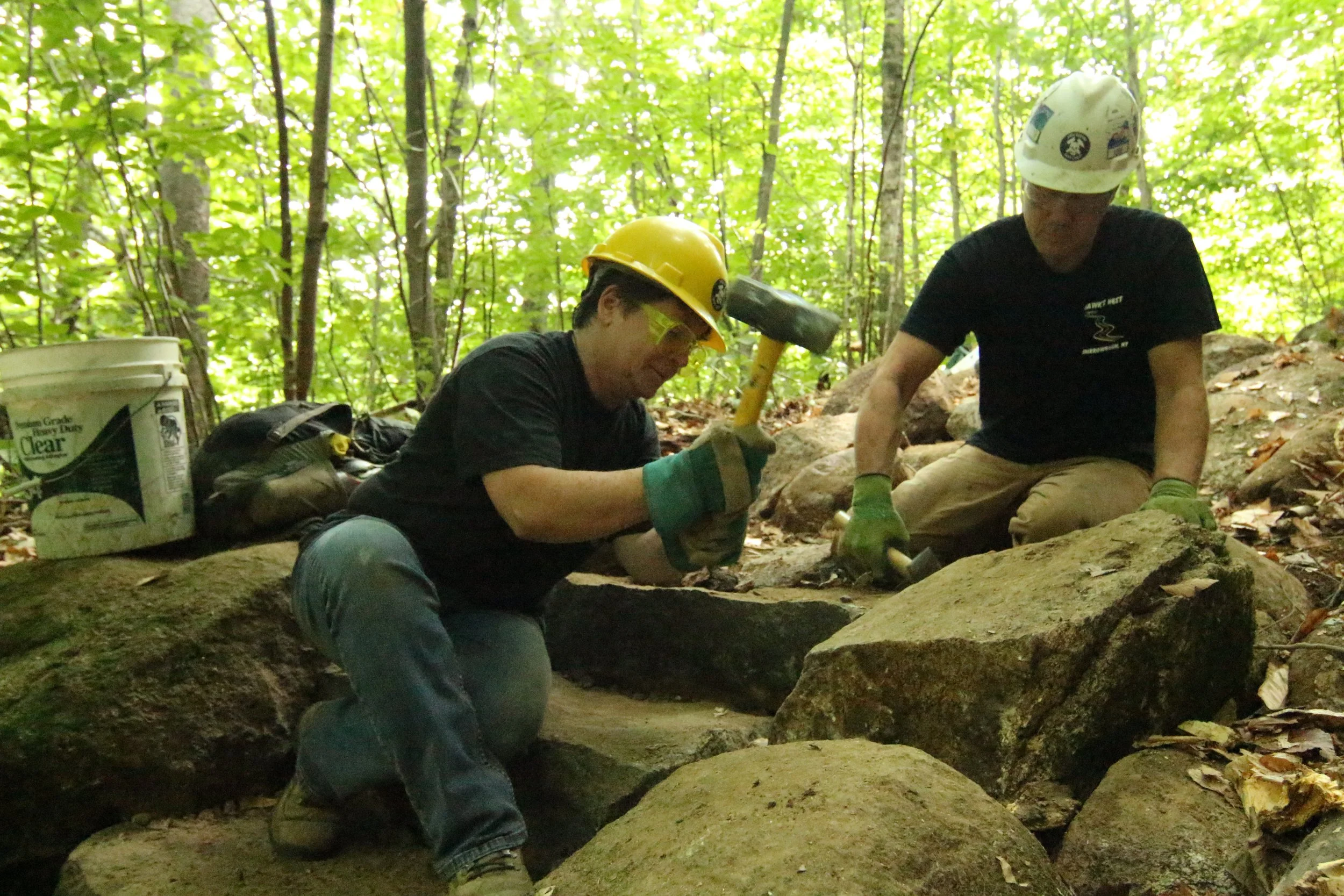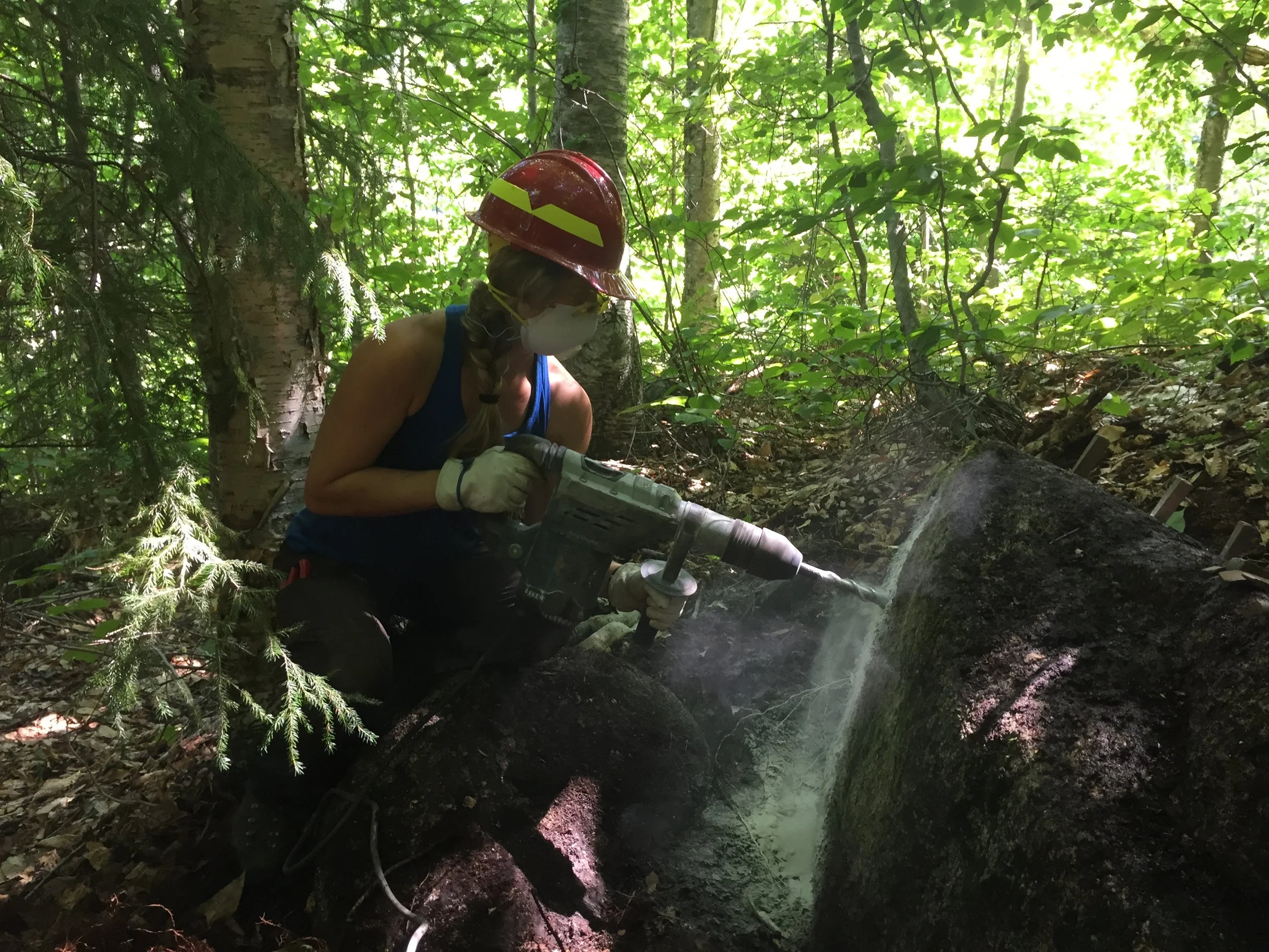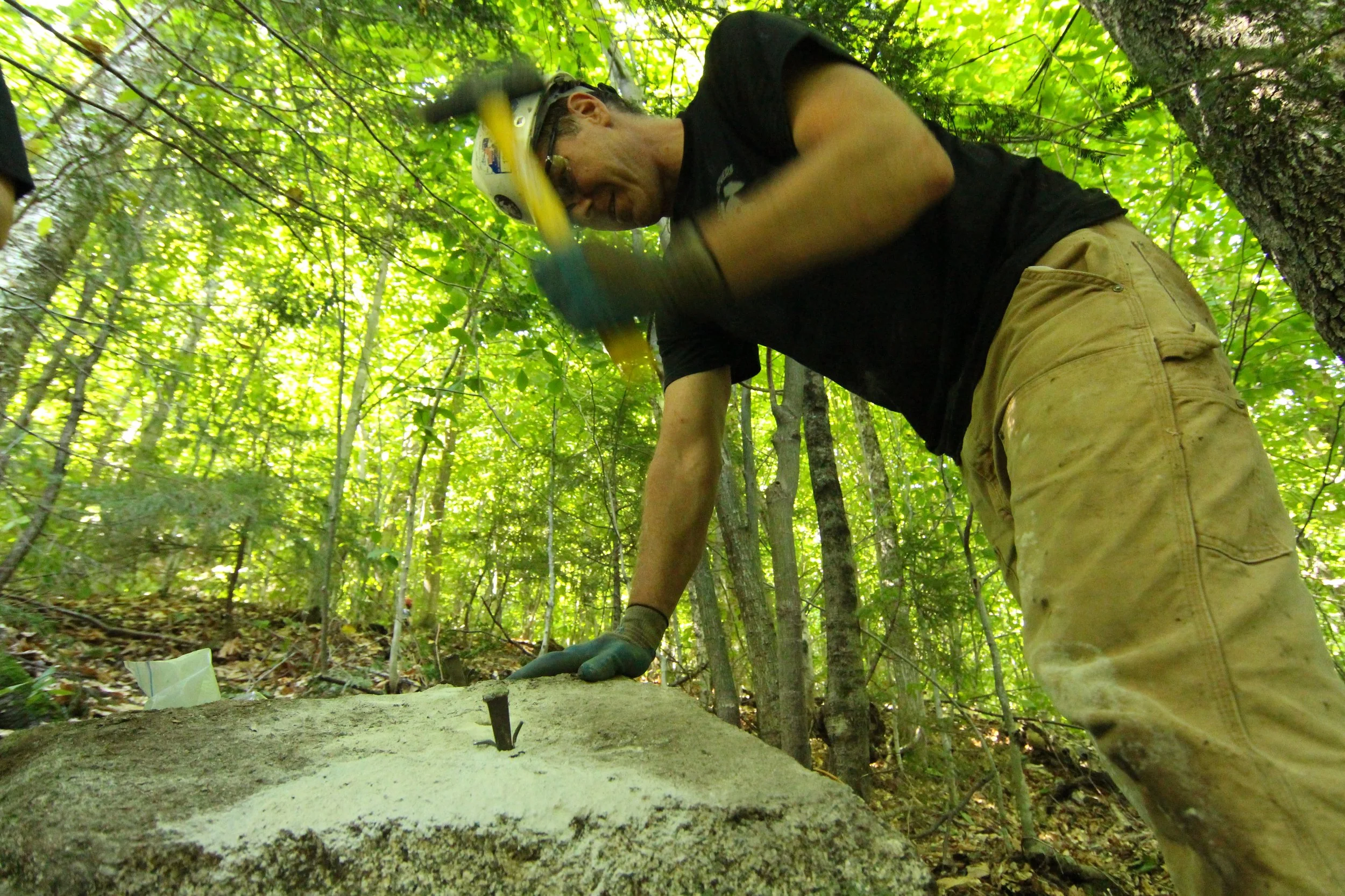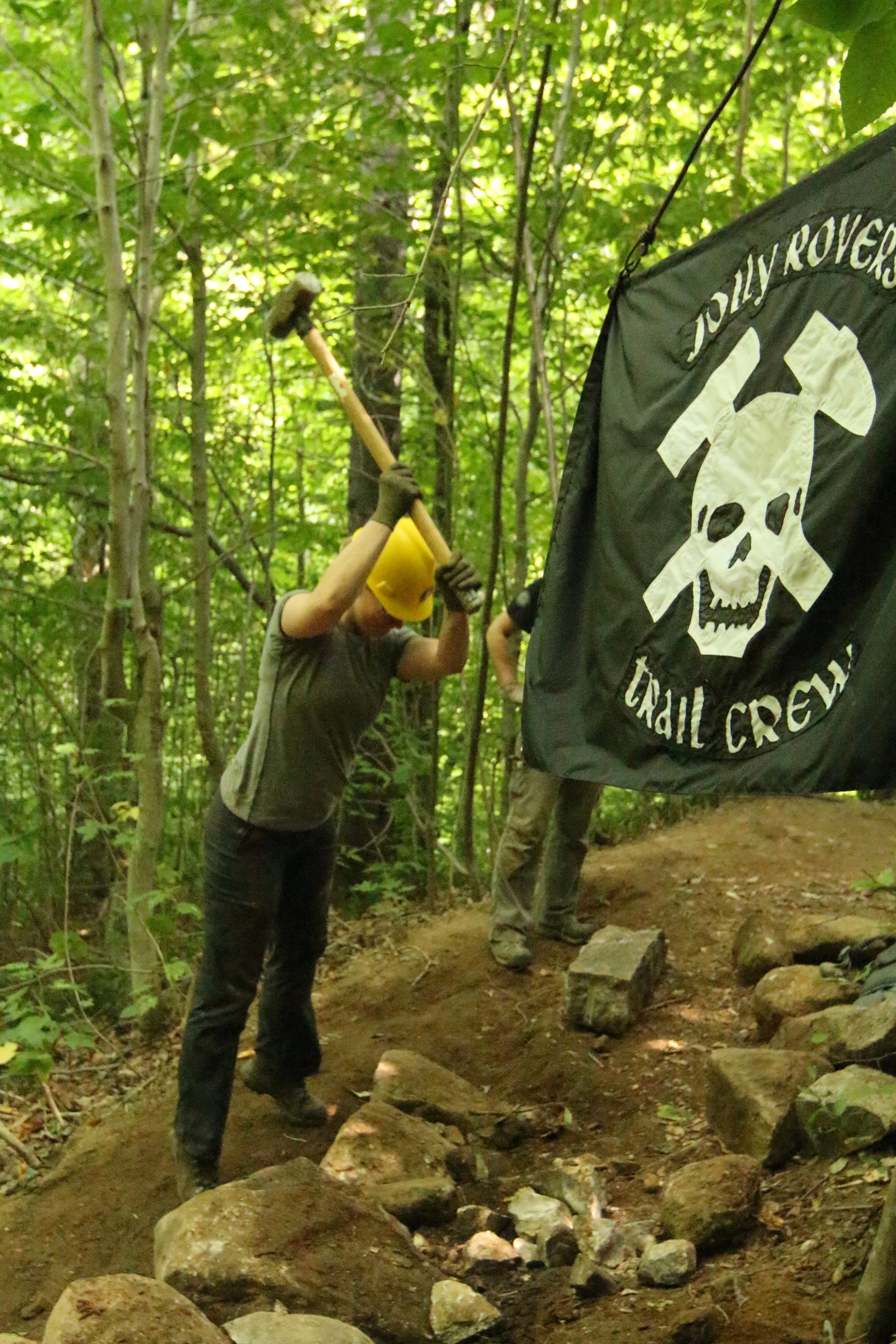 In the fall of 2013, the United States Forest Service approached the Jolly Rovers to rebuild a section of the Champney Brook Trail on the way up the famed Mount Chocorua. On this particular route to the summit, several stunning attractions in the form of a series of waterfalls, pools and vistas attracted more visitors than the summit itself. At the junction where visitors could go left to enjoy the various vistas and waterfalls or go right to shoot straight for the summit, the conditions of the trail had become particularly poor and also confusing for visitors. After a scouting trip to plan logistics for the large scale mobilization effort, the Jolly Rovers partnered up with the United States Forest Service for the first time in it's history.