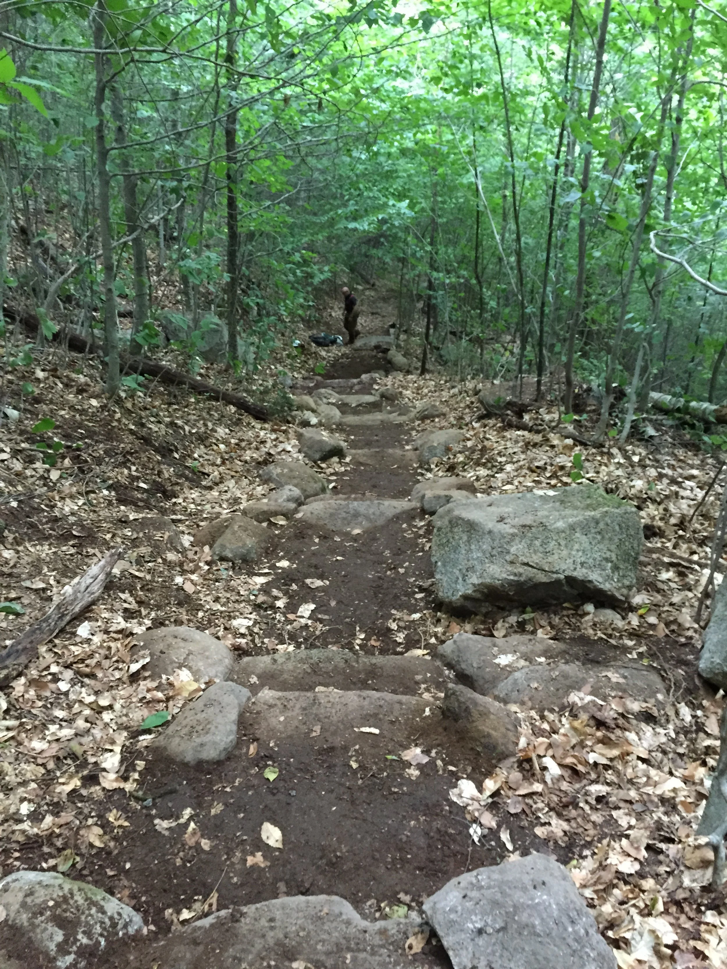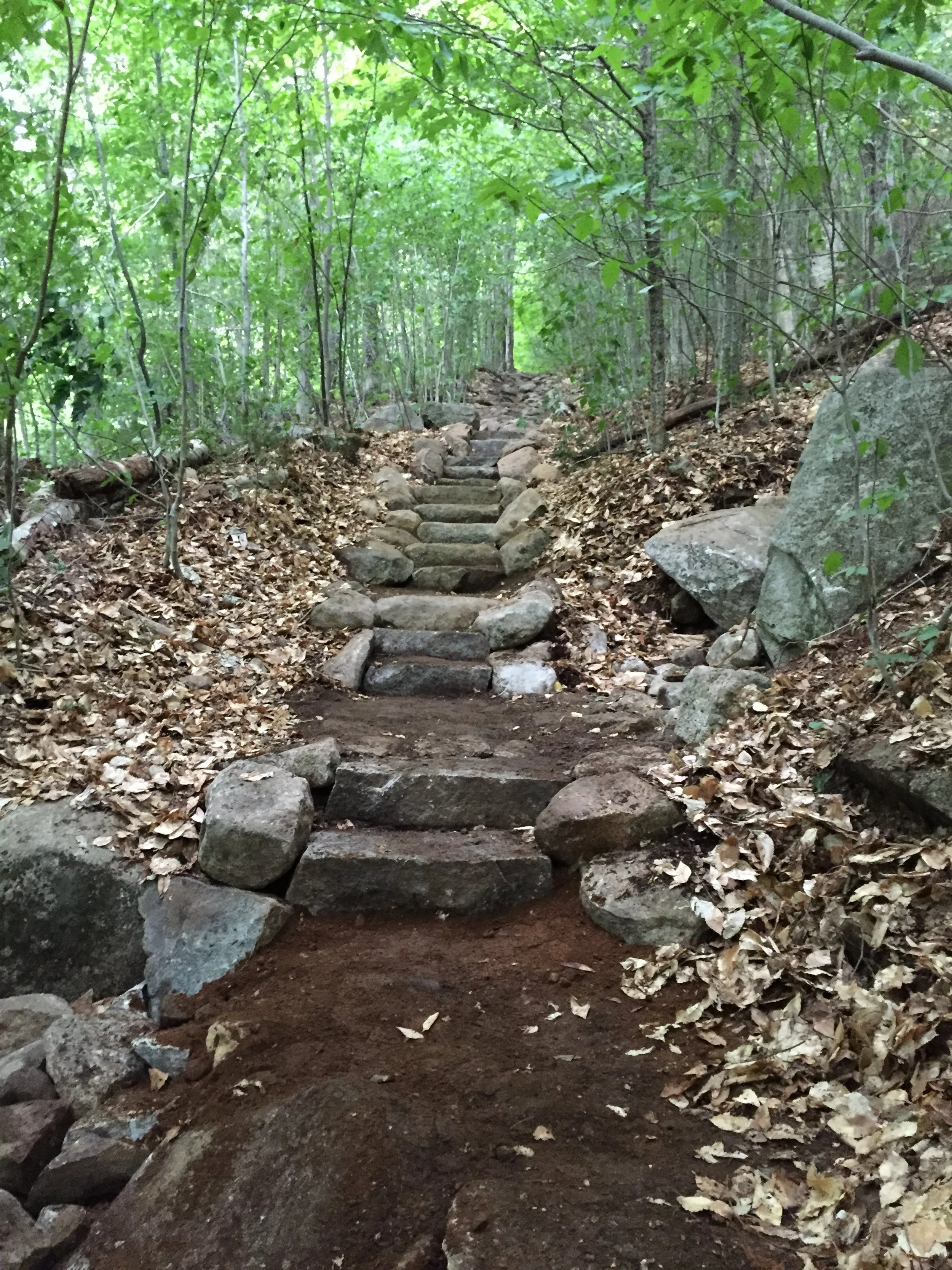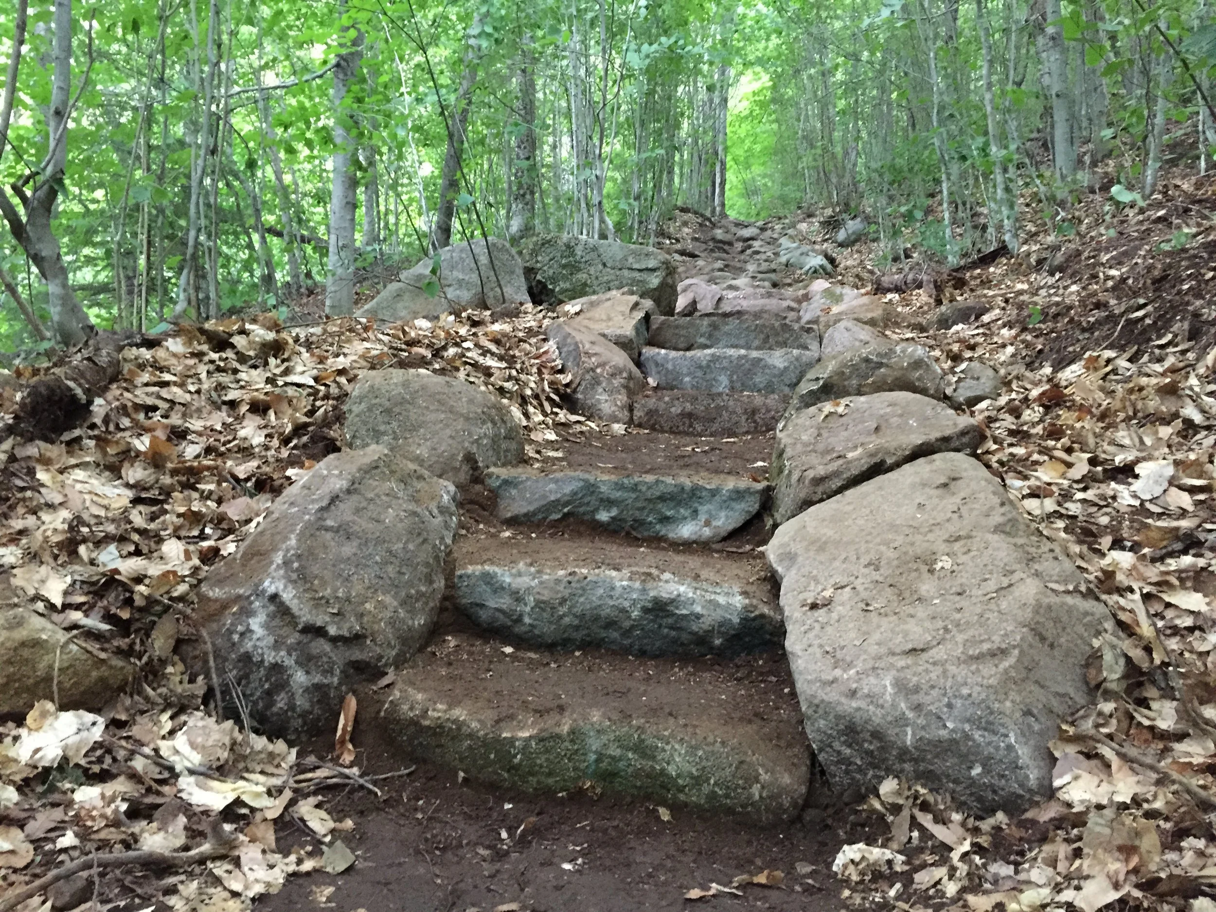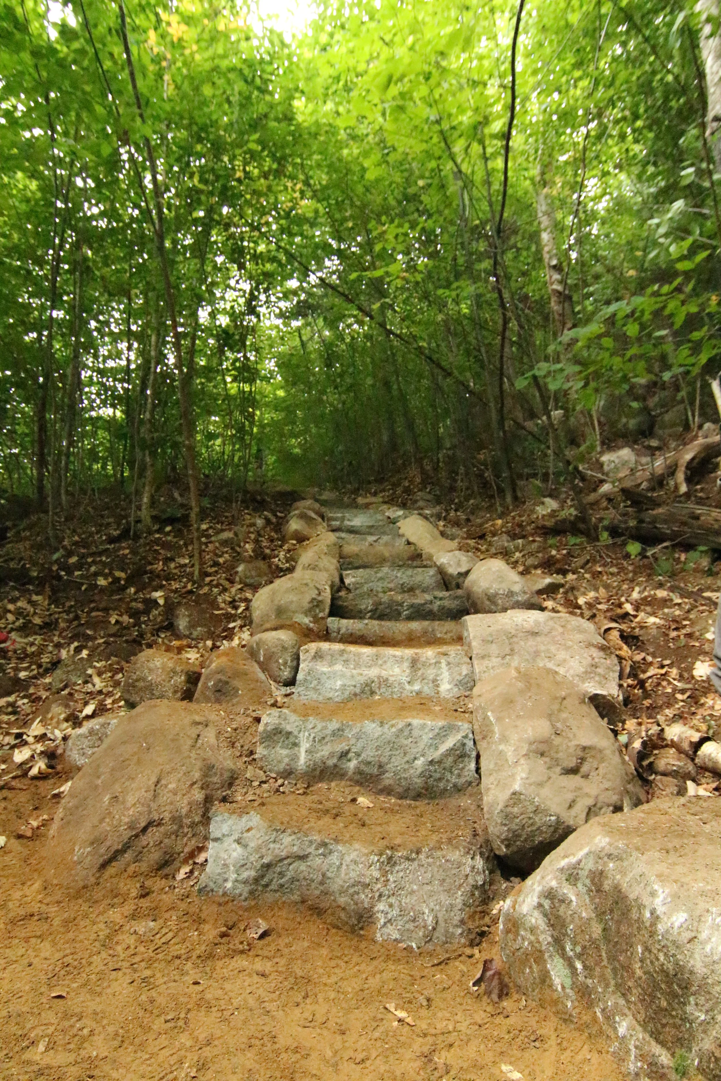 The total project resulted in over 50 stone steps, 30 feet of stone wall and one stone paved swale to intercept seasonal water flow across the trail. After some additional revegetation at the junction along with some signage, visitor confusion of where to go along with the issues of erosion at that particular location ceased. In such a beautiful location, with the magnificent White Mountains around us, we could not have asked for a better trip.